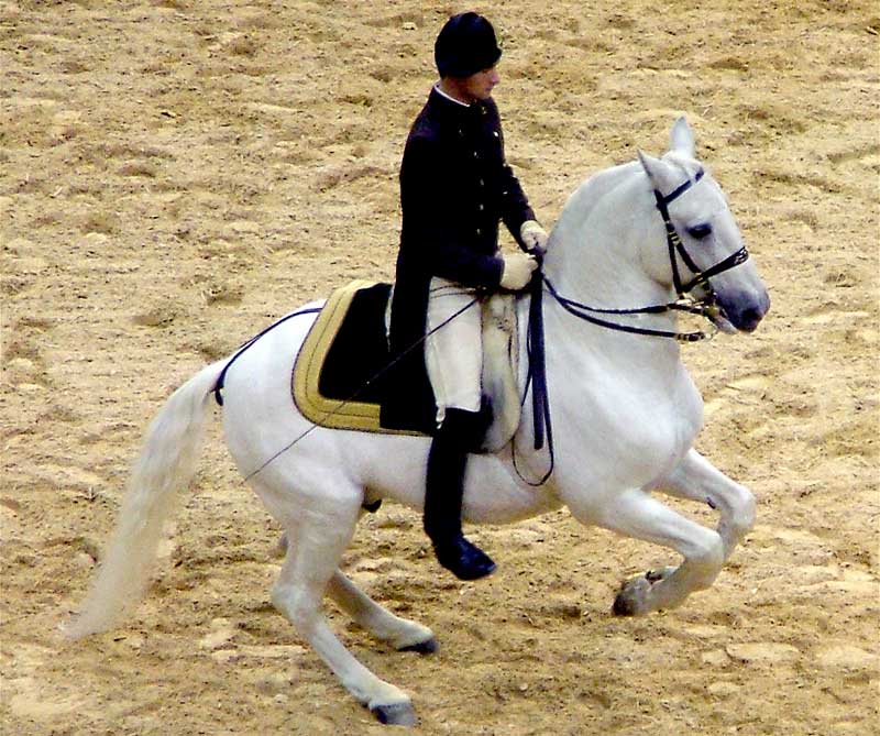 - ca în cabrare - fiind sprijinit pe membrele posterioare aproape pînă la jareţi.
