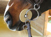 | Protecţii zăbală: sunt inele de cauciuc care se pun pe zăbală pentru a proteja buzele calului de a fi ciupite cu zăbala şi pentru a preveni intrarea inelelor zăbalei în gura calului. Nu sunt permise în competiţiile de dresaj. | Protecţie urechi: este o husă din material textil care se foloseşte în concursuri, pentru a atenua zgomotele pe care le percep caii. |